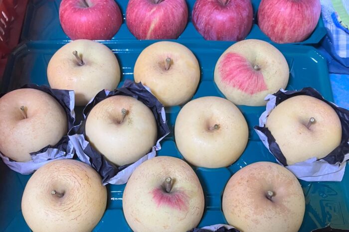 特徴的な濃い赤い色づきのりんご。酸味と甘みが半々位の濃厚な味 …