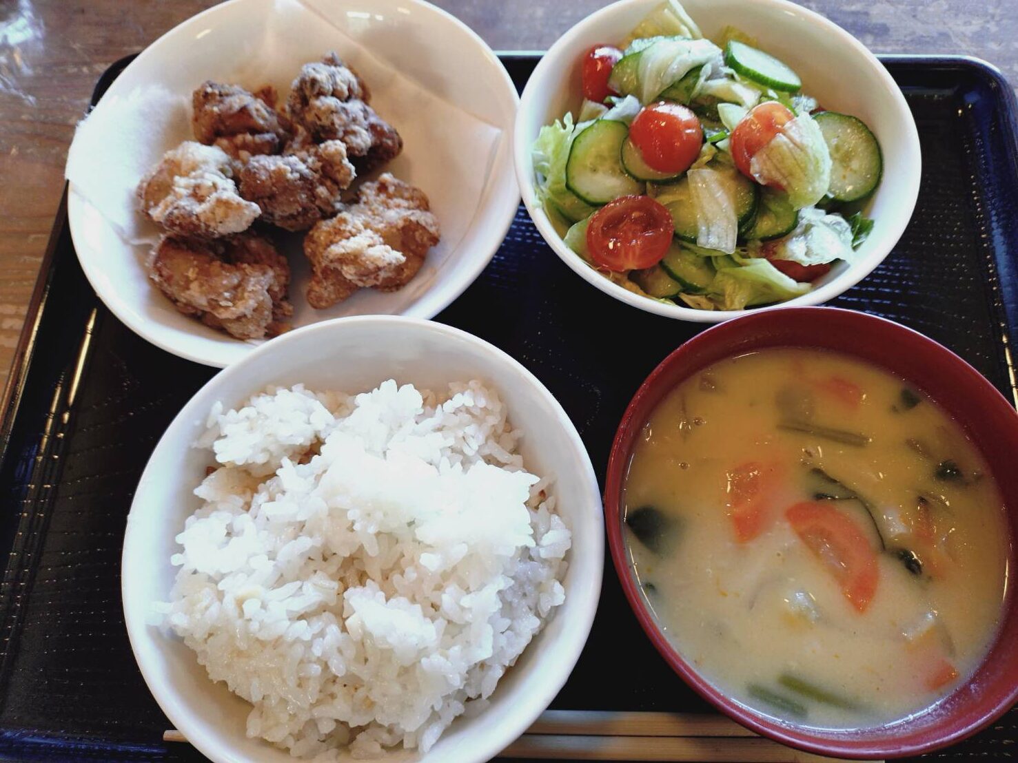 そしてクリスマス献立にも違和感が。かぼちゃベースで具だくさんの体が温まる汁物の向こうに、トマトときゅうりの夏野菜たっぷりサラダ。体を温めたいのか冷やしたいのか、不思議な組み合わせに首を傾げた吉田でした。