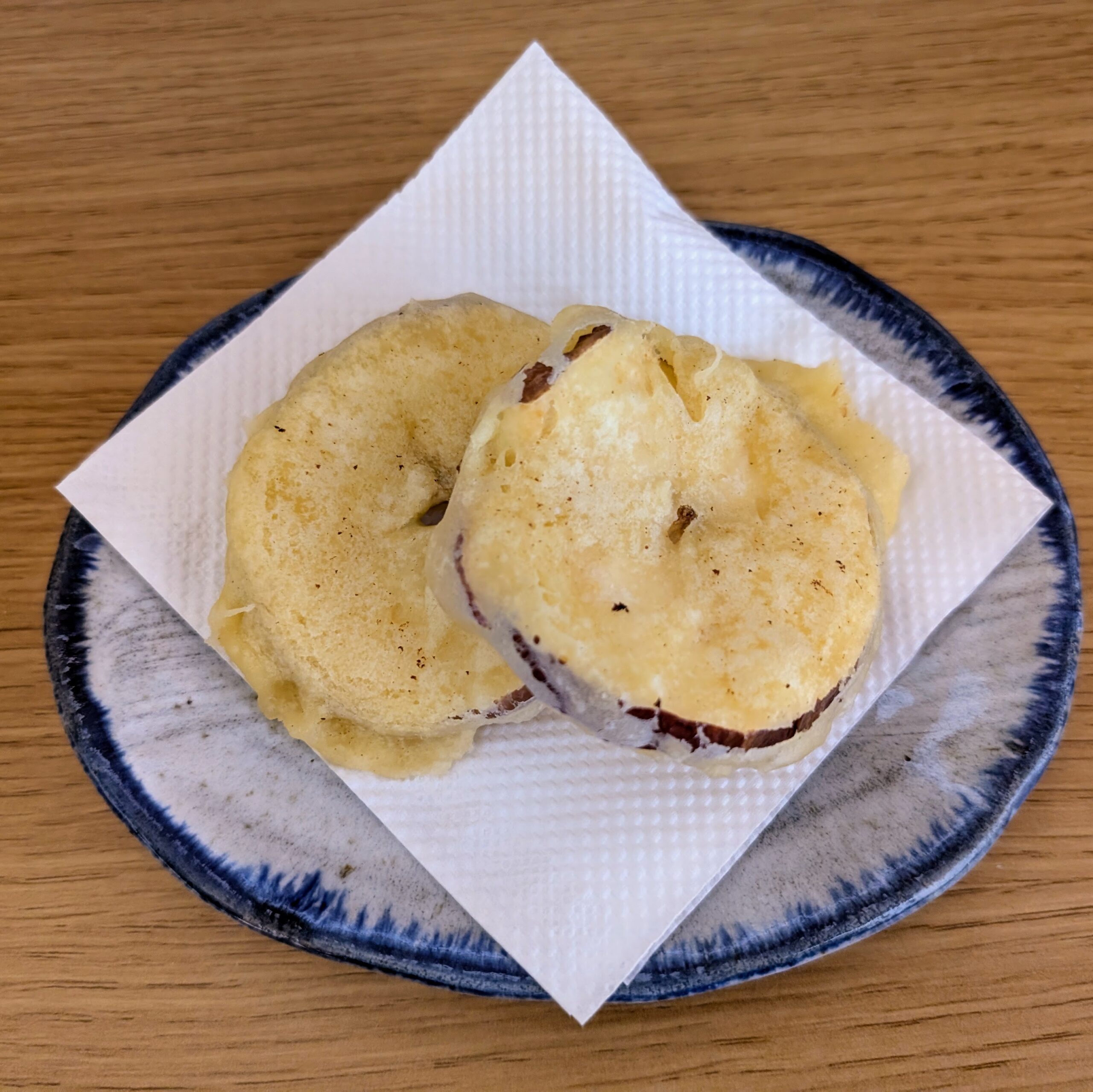 揚げたても美味しかったですが、冷めてしっとりした天ぷらの方が、りんごの香りや味がしっかり感じられて私は好きでした。