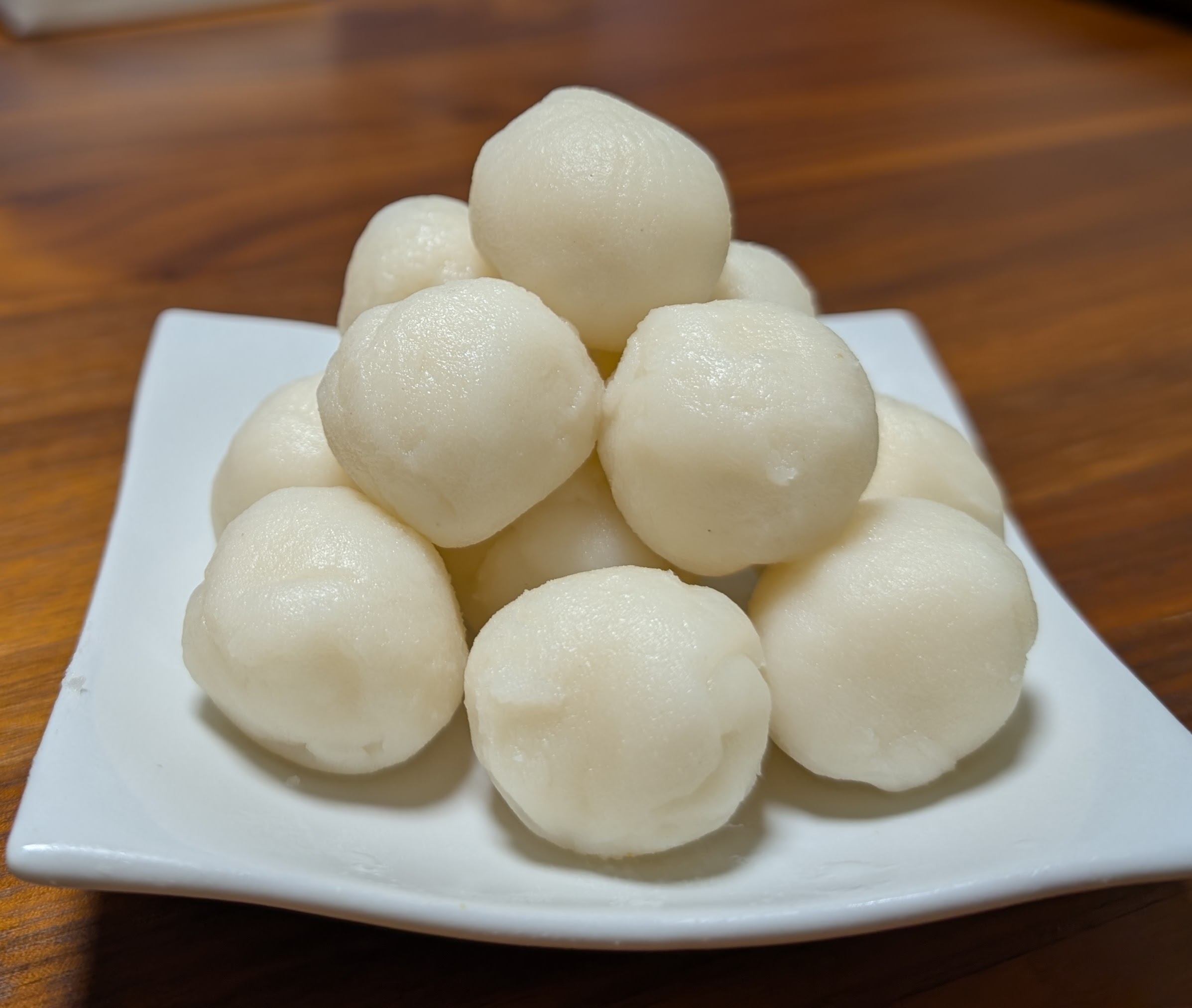 蒸し上がったピンポン球より一回り小さなまん丸お団子に、しょうゆをちょっとつけて美味しそうに頬張っていた姿を今でもはっきり覚えています。